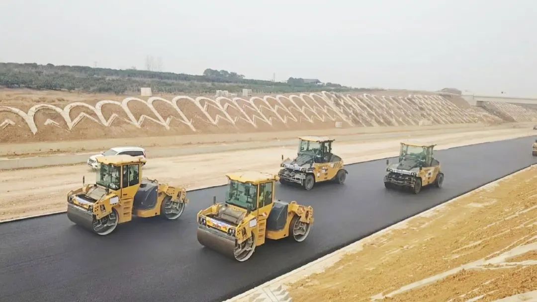 双钢轮XD135TCIV 压路机对摊铺后的路面进行初压,有效挤出沥青中的气泡,为路面坚实基础筑牢第一步。胶轮 XP305KSIV 压路机通过柔性碾压,使路面更加平整密实,避免了路面压实不足与平整度欠佳的问题。