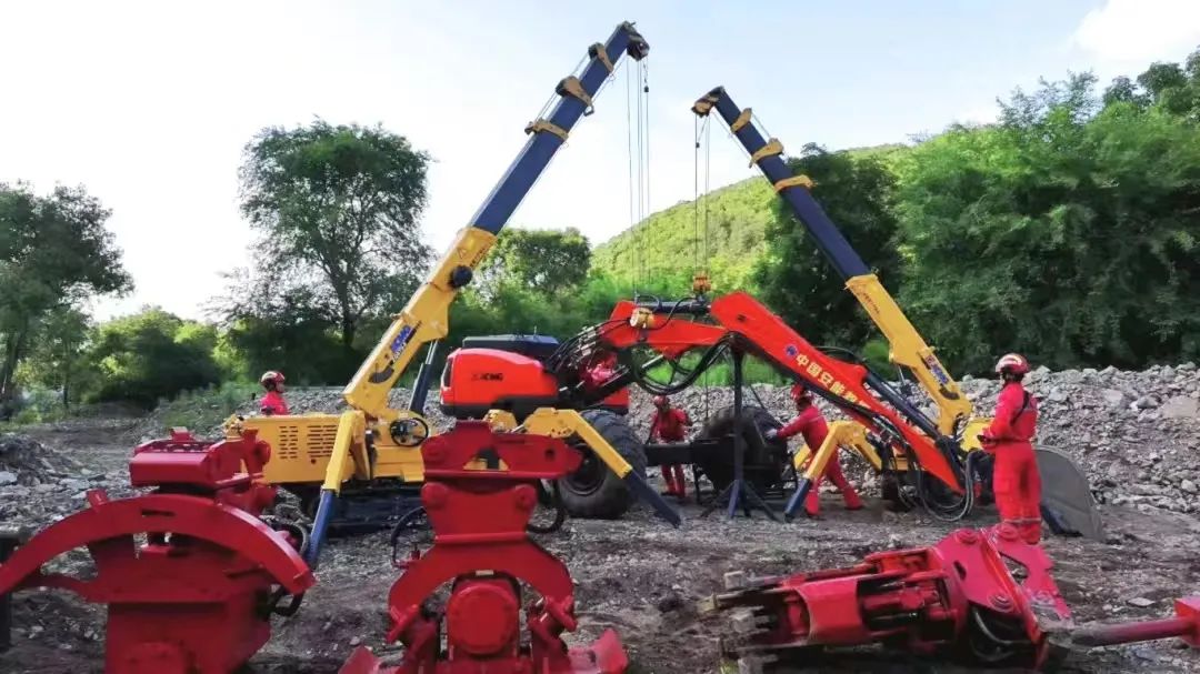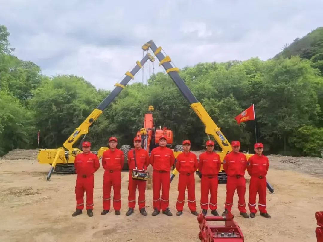 演习现场,这组“成套化拍档”协同中国安能,针对泥沼、滩涂、洪泛等低承载地形,进行模块化步履挖快速拆解、直升机吊装至现场快速组装演习,并开展系列清障救援行动。