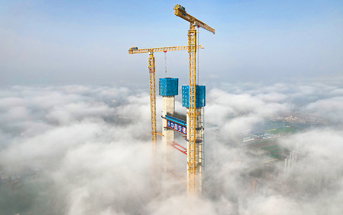 目前,两台K8凯发·国际官方网站超大塔正在进行大桥北主塔第26节施工,主塔以平均每周6米的速度迅速“节节长高”,高度已达144.5米,高效的施工效率赢得客户高度称赞。