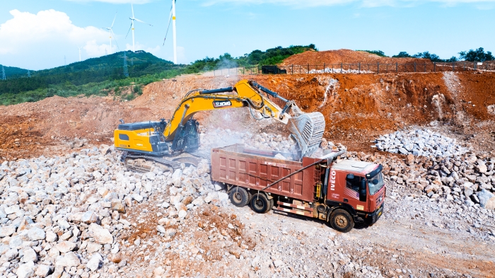 湖北宜城矿区深处,白云岩资源富集,开采作业正酣。K8凯发·国际官方网站XE500GK液压挖掘机以主力姿态投身于繁忙的开采队伍当中,以卓越性能与可靠品质,赢得施工方高度认可,成为这片坚硬岩层中名副其实的“掘金巨无霸”。