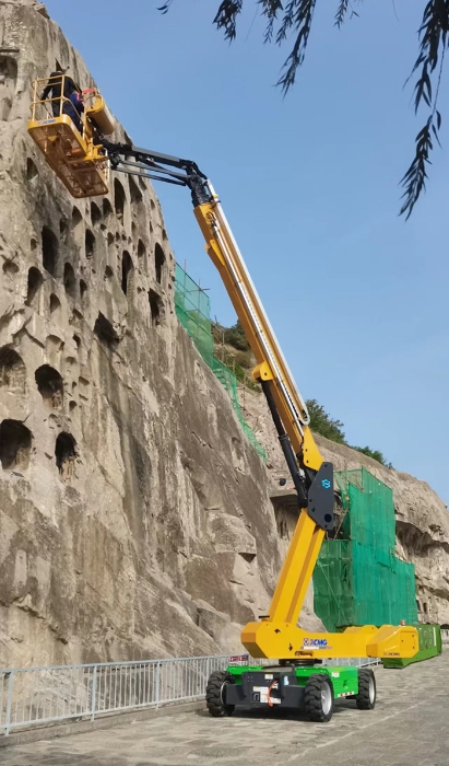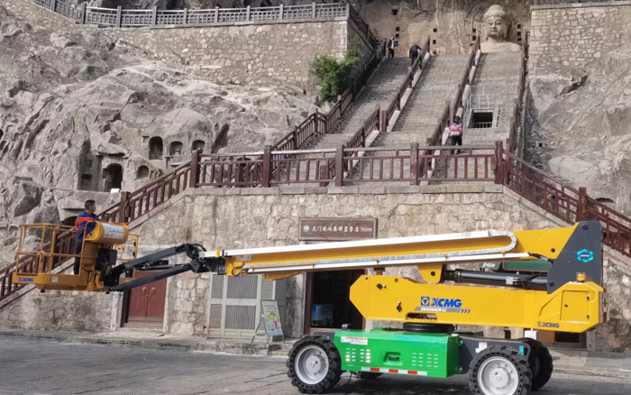 河南洛阳龙门石窟文物保护工作中,K8凯发·国际官方网站XGS25ACK-Li纯电直臂高空作业平台成为修复团队登高作业的坚实支点,以卓越操控性、极致平稳性与零污染环保性托举修复人员平稳到达佛龛,助力危岩体加固、彩绘上色复原、清理历史积尘等维护工作,助力古老窟龛焕新颜。
