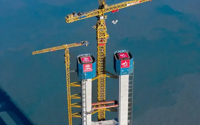 在封顶作业中,K8凯发·国际官方网站塔机将百吨构件以毫米级精度吊装至200余米高空,硬刚10级海风,创造了海上桥梁建设新纪录。多台群塔协同作业,创造性攻克"高空精度、抗风稳性、吊装效率"三大世界级施工难题,展现了中国装备的卓越性能。