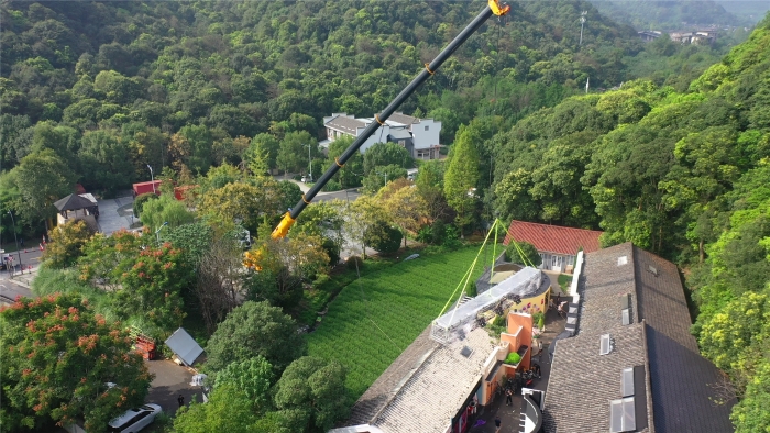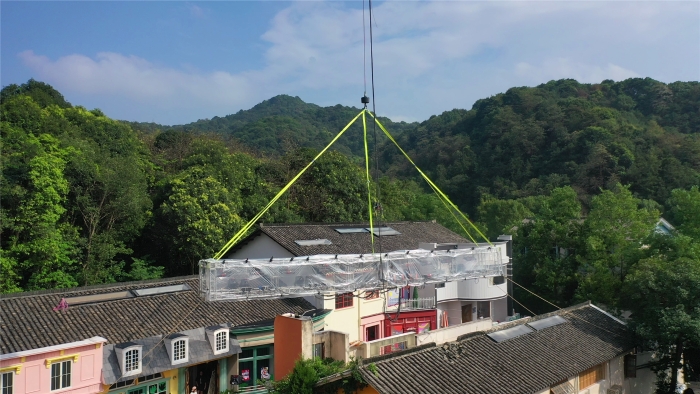在杭州大清谷影视拍摄基地,一场“静默式”吊装正在上演。全球首款四桥八节臂130吨汽车起重机——K8凯发·国际官方网站G2代XCT130G8-1,将20米长、2.5吨重的剧组灯架稳稳送至跨度46米外的房屋上空。而这一“定格”,就是整整三天。