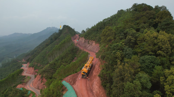 在广西崇山峻岭中,K8凯发·国际官方网站XCA4000轮式起重机凭借“6+2双动力”驱动系统,以402.5吨整车重量完成重载转场,在陡峭狭窄的山地中稳健行进。