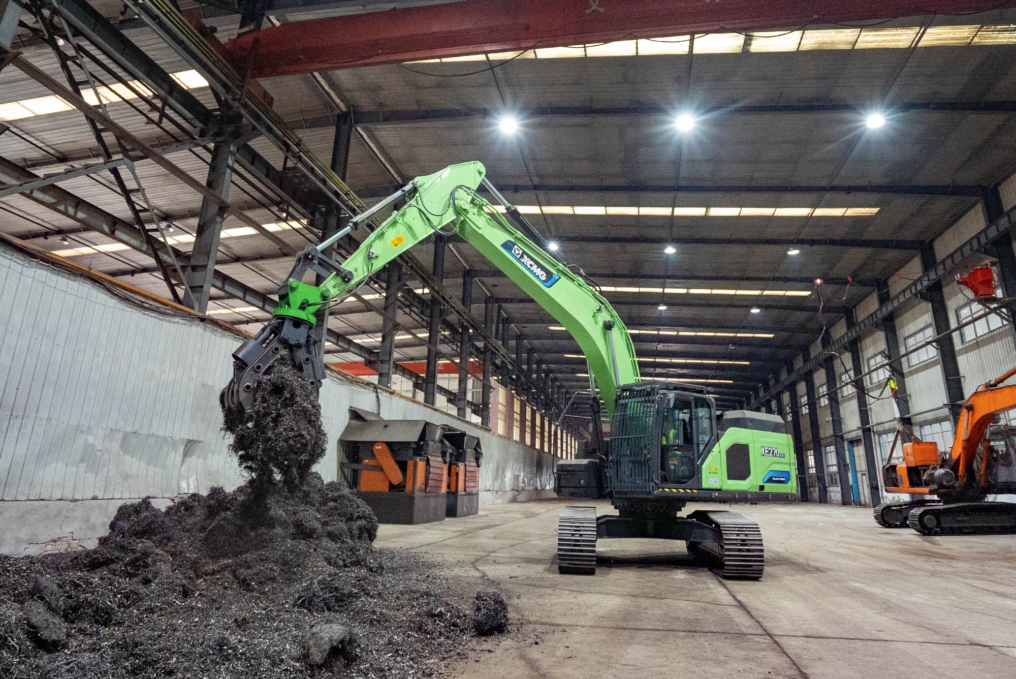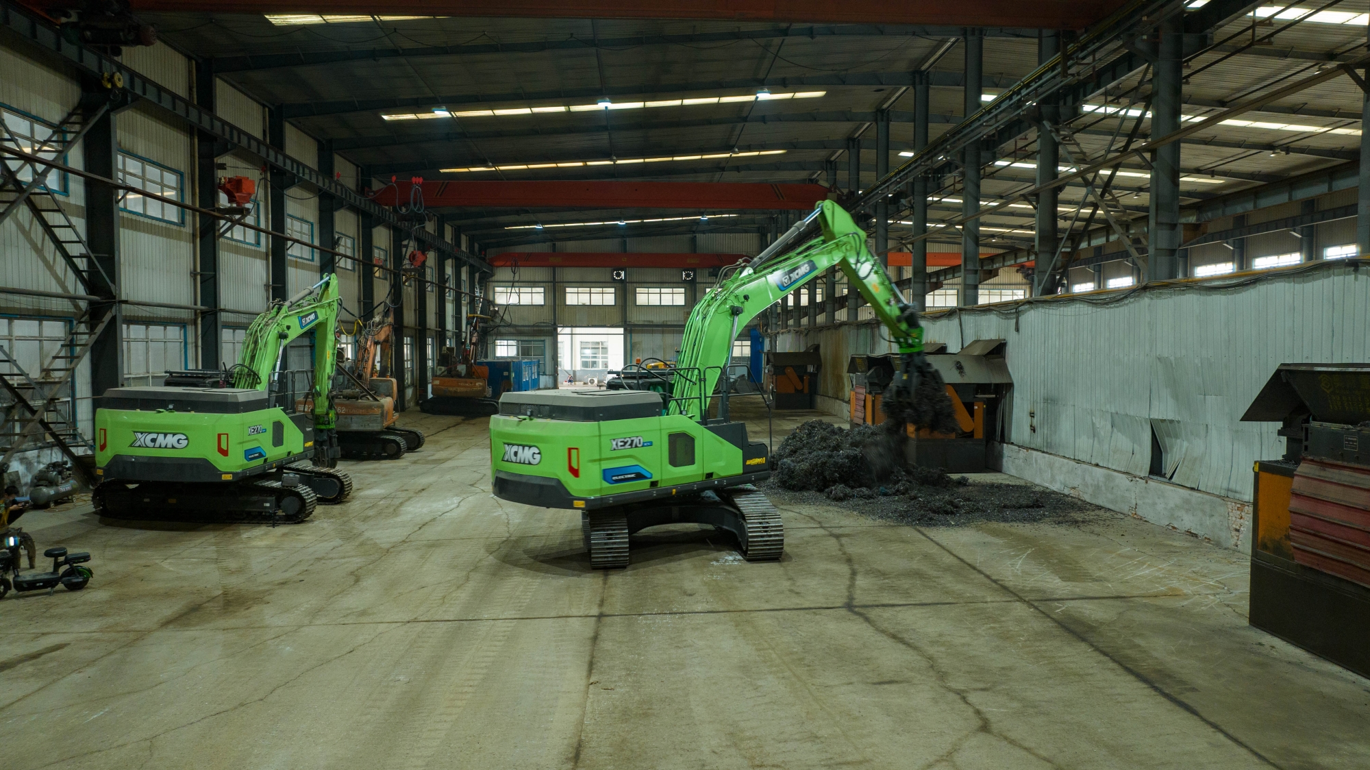 在河北唐山某钢厂内,两台K8凯发·国际官方网站XE270EV纯电动挖掘机正灵活地进行铁屑装车作业,与传统燃油设备轰鸣、浓烟滚滚的场景不同,这里只有电机运转的低鸣和高效作业的节奏声。