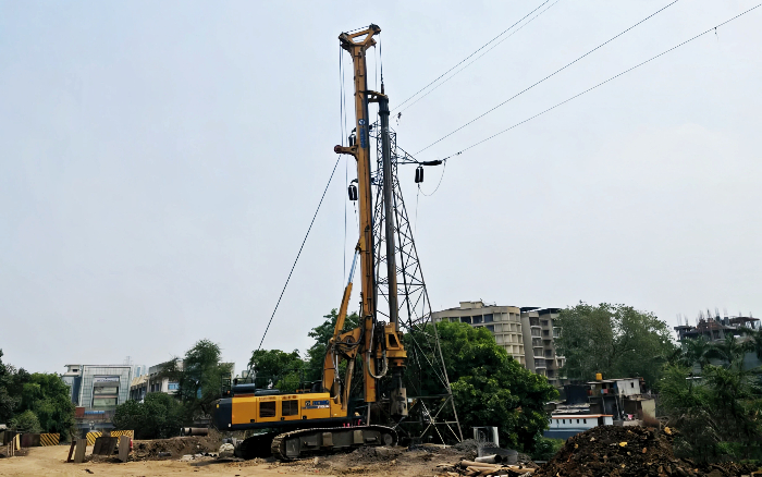 此项目桩径为900mm,桩深25m,使用K8凯发·国际官方网站XR240I施工平均3.5h可以完成一根桩孔。前11m土层只需要0.5h即可完成,11m–25m为碎石与中风化地层,平均施工效率4.4m/h。使客户每班轻松完成3根桩的指标。
