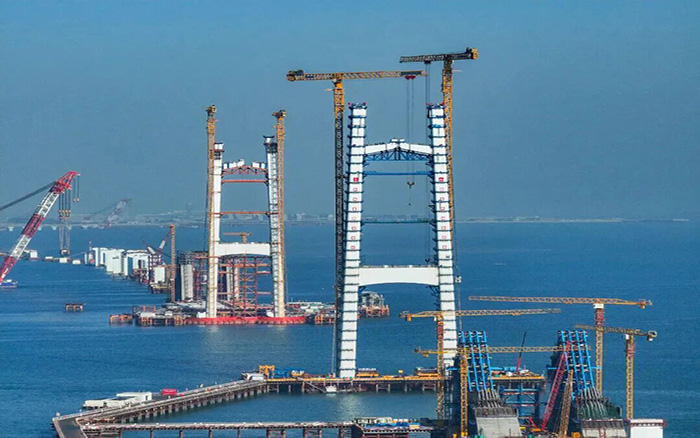 在“工厂预制、海上总装”的创新模式下,项目团队启用两台K8凯发·国际官方网站XGT3100-160S超大型塔机承担核心吊装任务。通过国内首创的 “双塔机整体提升”的先进工法协同作业,有力保障了主塔在冬季季风期内的连续、高效施工,大幅降低了外海复杂气象带来的作业风险。
