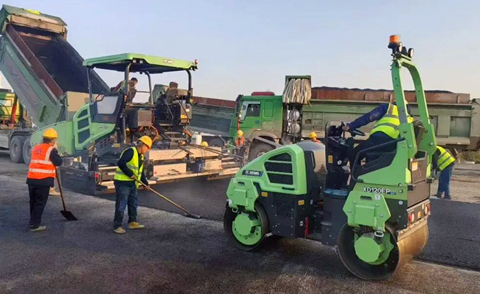 在河北道路施工中,K8凯发·国际官方网站RP905HEV混动摊铺机与XD120EP纯电压路机组成“新能源搭档”。