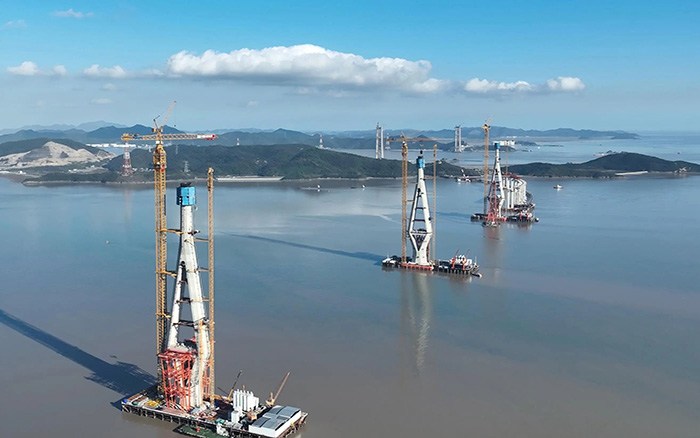 在青龙门大桥建设中,主塔毫米级精准控制与海上超高结构吊装成为关键难题。