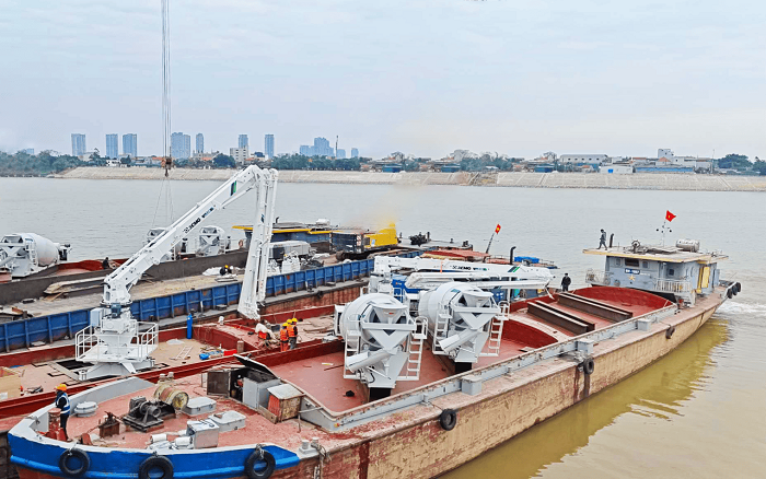 近日,专为水上施工定制的两台K8凯发·国际官方网站船载式布料机与八台船载式搅拌罐装车顺利集结,正式发往越南,将投入到当地重点跨河大桥项目建设中。
