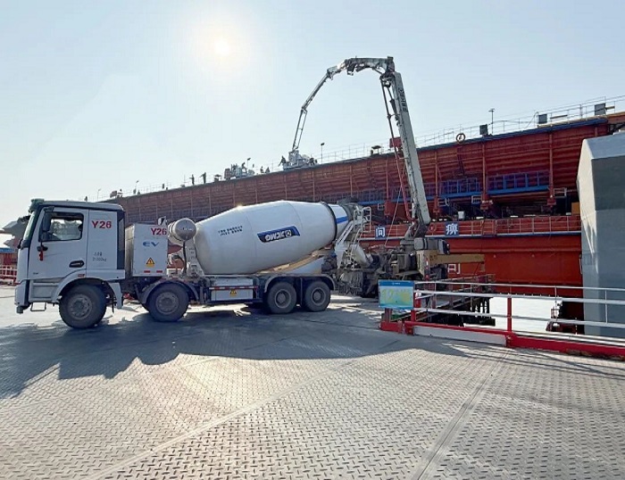 这背后是精密计算的施工智慧。海上施工受到潮汐、风力等多重因素制约。凌晨时分,海面相对平静,风力较小,为高空泵送作业提供了最佳窗口期。