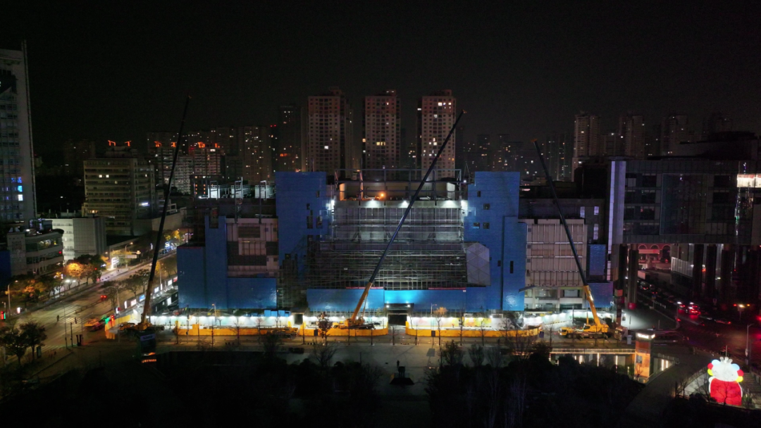 在徐州市中心,金鹰国际购物中心A座正在进行楼体改造,不仅加盖一整层,更在设计上延续了B座外立面的风格,这座地标性建筑即将焕然一新。