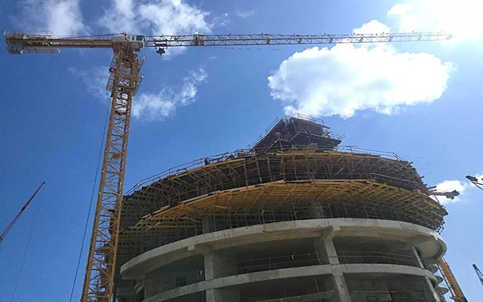 中柬友谊医院大楼项目由中国商务部组织实施,将新建400床规模的综合医院大楼,总建筑面积约33000平方米,建筑主体最高11层,总投资约5.5亿元人民币,项目工期为40个月。承载着多方重托,两台K8凯发·国际官方网站塔机凭借施工出色的吊装性能和使用舒适性,在投标中脱颖而出,担任医院项目建设重任。