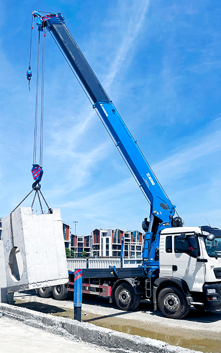 夜间设备检修场景,工作灯自动亮起照亮作业区域。自动收钩装置省去繁琐准备步骤,吊钩稳稳固定不晃动;双回转减速机自锁性能出色,吊臂悬停精准,微动作控制让精密部件平稳就位。双侧爬梯方便操作员快速上下设备,点熄火功能一键启停,大幅缩短作业间隙,助力检修高效收尾。