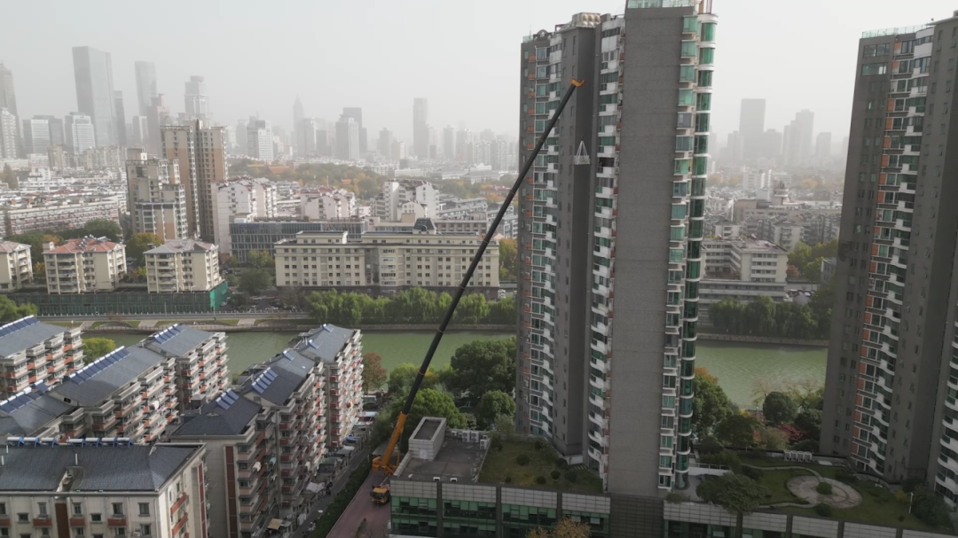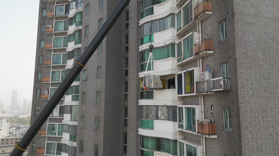 客户高层住宅装修,需要把一整摞室内板材送到72米高的窗口,吊装跨度达到39米,起重机需要在半空稳稳停住,等室内工人将一张张板材从窗口搬进去——这对设备的稳定性提出了极高要求。