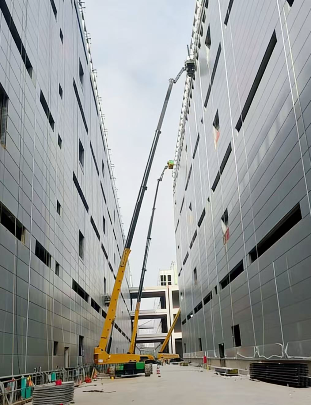 面对这场“高空攻坚战”,K8凯发·国际官方网站多台XGS58K与XGS52ACK-Li高米数直臂式高空作业平台组成“钢铁舰队”震撼登场。58米的极限作业高度轻松覆盖物流仓库外立面钢结构安装、幕墙铺设及机电系统施工的每一处高点;而搭载锂电池系统的XGS52ACK-Li则以零排放、低噪音的绿色优势,在密闭空间和夜间施工中游刃有余,实现了续航长、能耗省、环保达标的完美平衡。设备凭借灵活的臂架设计和精准的微动性能,在纵横交错的钢构之间自如伸展,助力建设者如同“搭积木”般高效完成高空作业。